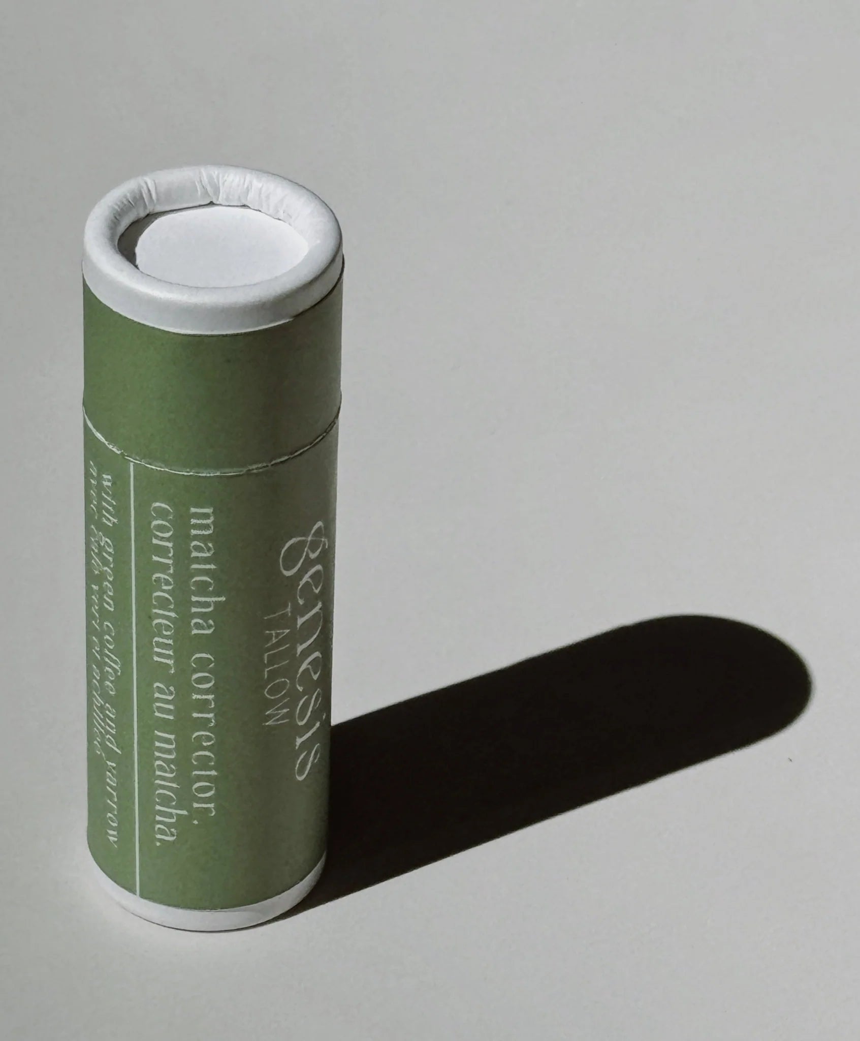Your new favourite little green helper. A tallow-based roll-on corrector stick formulated with key ingredients that help with under-eye dark circles, puffiness, fine lines, chapped lips, and dry skin.